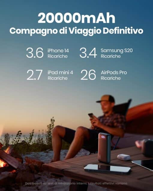 1x Power Bank 20000mAh, 1x câble USB-C, 1x manuel d’utilisation, 1x pochette de voyage, garantie 2 ans à la pointe de l’industrie et support technique à vie.