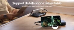 La batterie externe mini avec support téléphone qui tient dans votre poche et charge 3 appareils simultanément.
