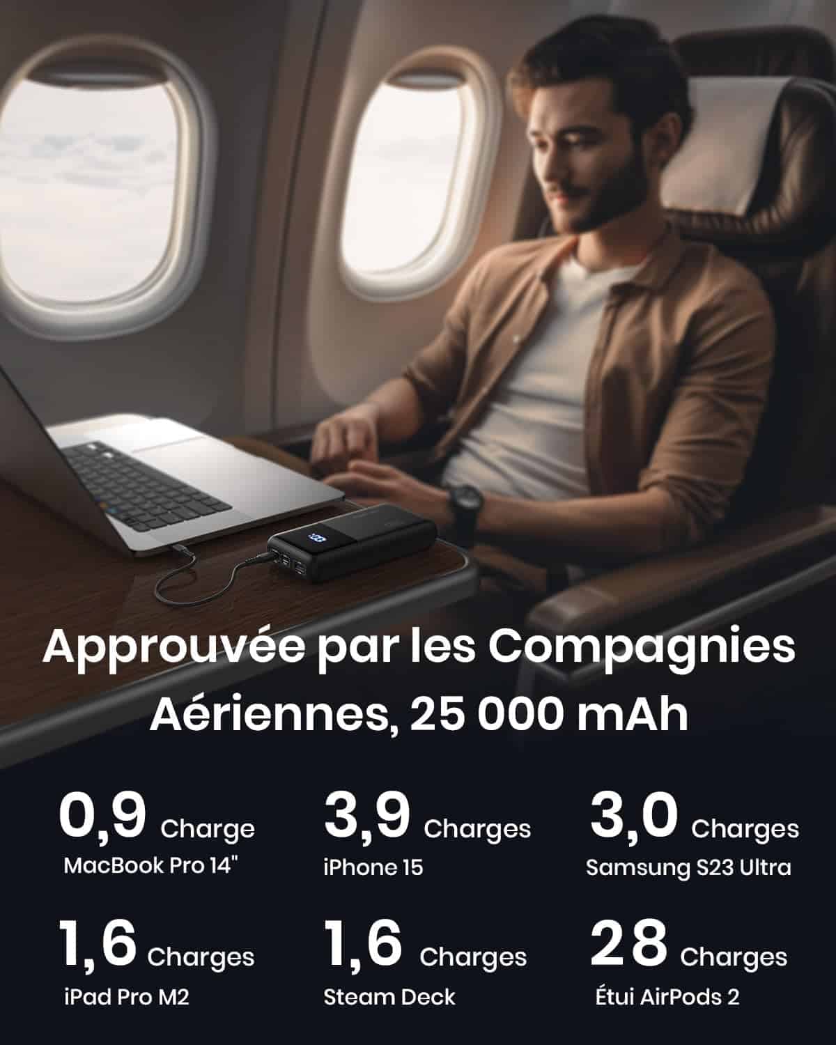 ✈️ Air Travel Ready – Capacité 25000mAh