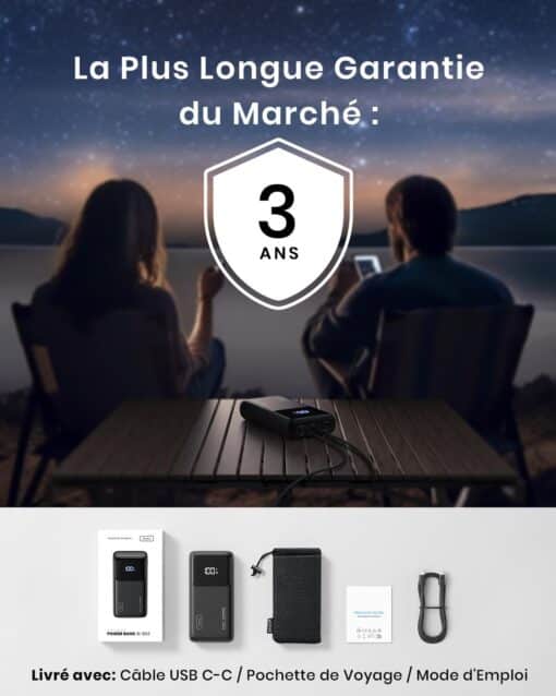Cette power bank 100W est particulièrement prisée par les professionnels nomades et gamers. Stock limité pour cette puissance. Vérifiez rapidement la disponibilité.