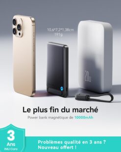 INIU Batterie Externe MagSafe 10000mAh 45W Qi2 Certifiée Blanc – Charge Sans Fil 30W Ultra-Rapide iPhone 17/16/15/14/13/12 Pro Max