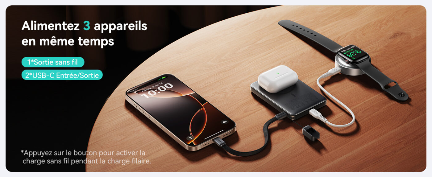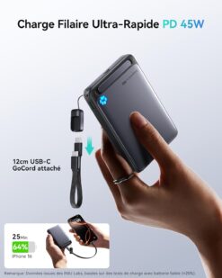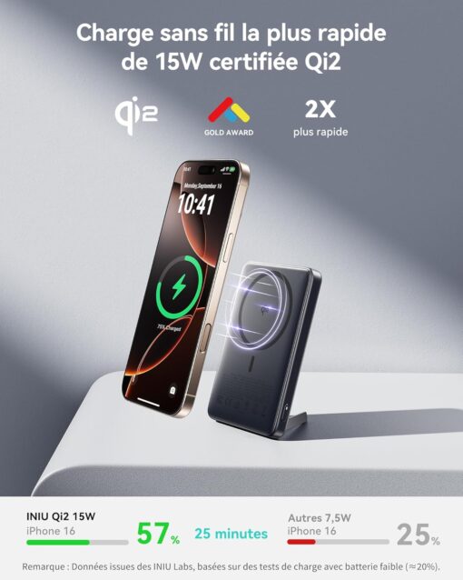 Révolution dans la charge magnétique ! Cette batterie externe offre une charge sans fil Qi2 jusqu’à 30W — la plus rapide du marché pour iPhone. Chargez votre iPhone 16 jusqu’à 50% en seulement 20 minutes en mode sans fil, performance inégalée même par Apple MagSafe.
